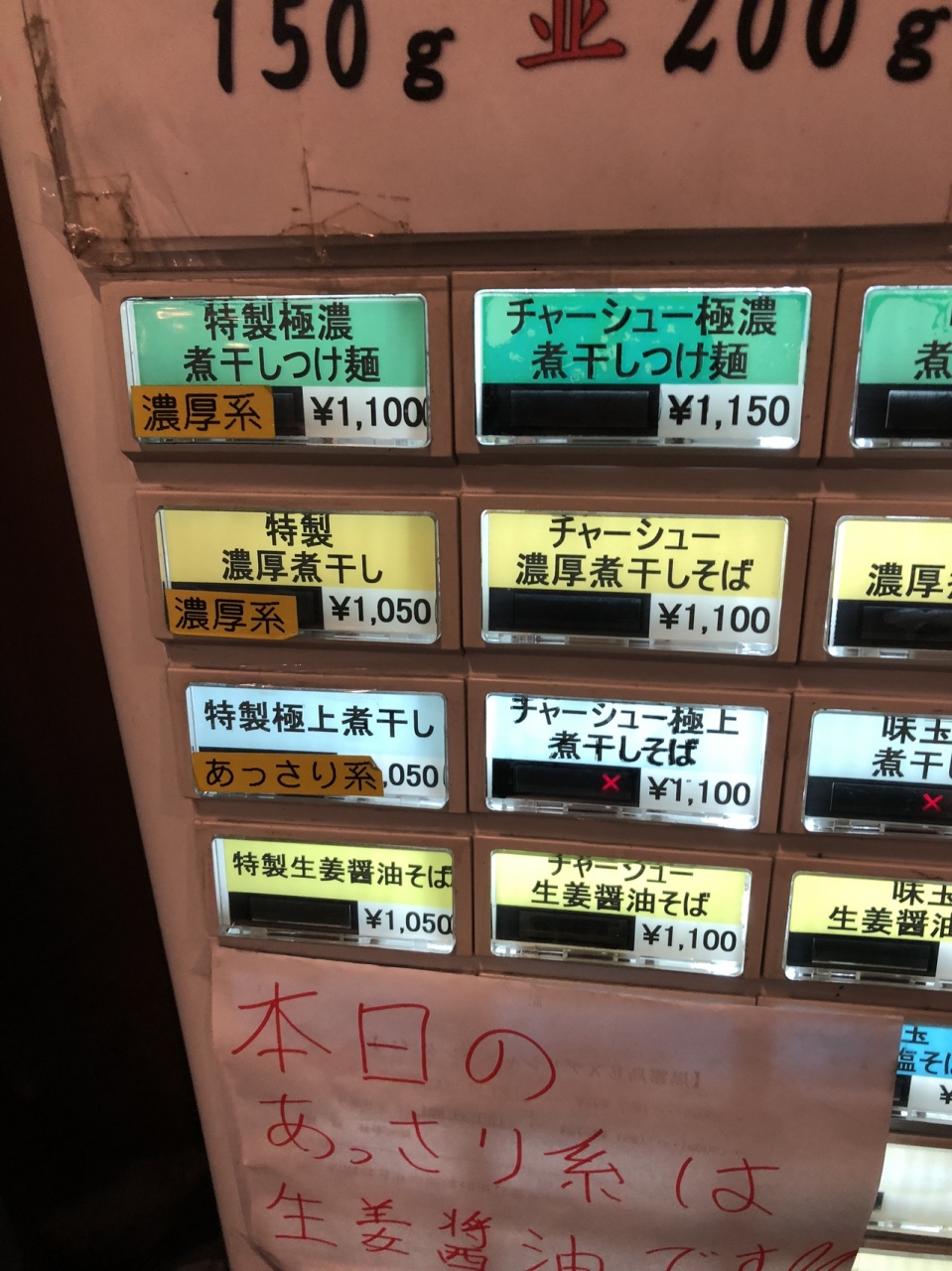 ここの売りはつけ麺だと承知してるけど、今回はらーめんの特製濃厚煮干しにした。麺量は 200gの中 +¥60-