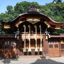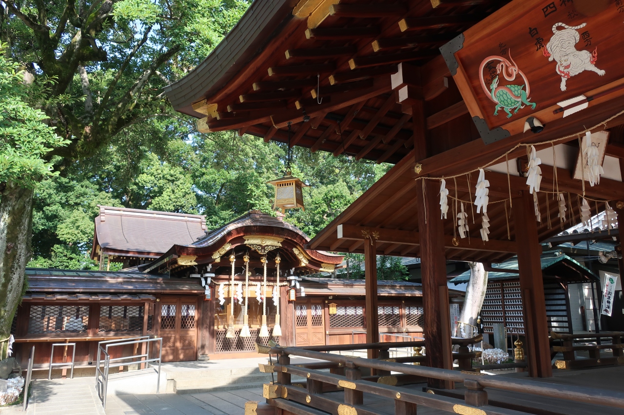 京都御苑の西方、烏丸通りに面した所にある和気清麻呂を祀る神社が護王神社です。境内にはいたる所に猪の置物がみられ、狛犬までも狛猪です。この猪の加護によって和気清麻呂の足が良くなったと言う話から足腰の守護神として参拝される方が多い神社です。私の旦那も腰を患い足が悪いので丁度良いお参りになりました。