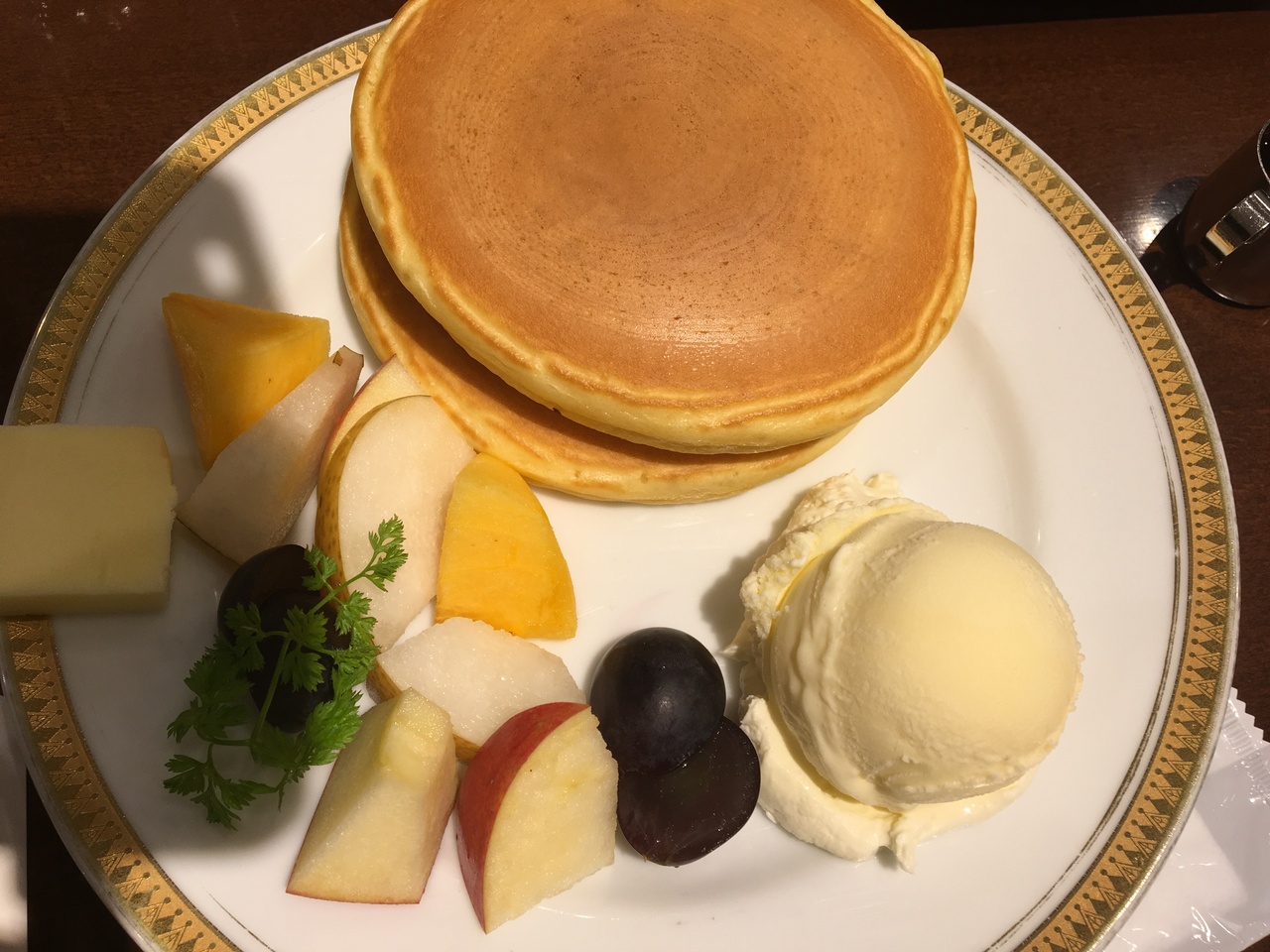 銅板焼きのホットケーキがおいしいです。パリッと香ばしくてふっくらしています。メープルシロップか蜂蜜(選べます)とバターがからんで幸せな味です。なんだか懐かしい気持ちになりました。