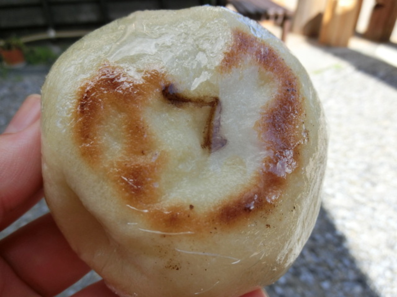 散策中におやきが食べたくなったので、こちらのお店に立ち寄りました。いくつか種類がありましたが、「みそくるみ」はここのオリジナルということだったので、それを選びました。甘くて美味しかったですが、おやきは熱々ではなく、けっこう冷めていたのが少し残念でした。