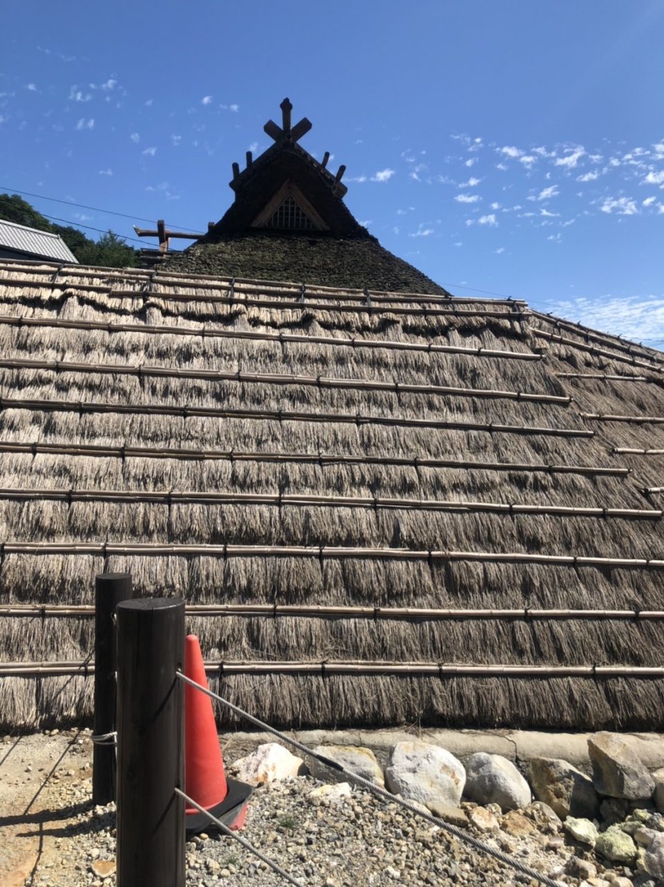わらで出来た小屋は原始人の住まいの佇まいを感じさせます。