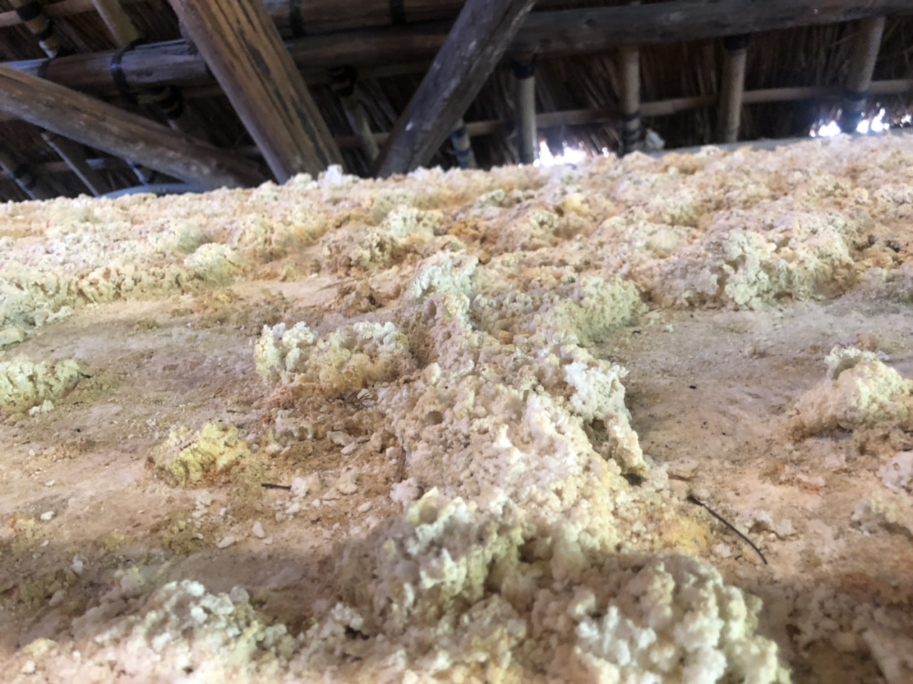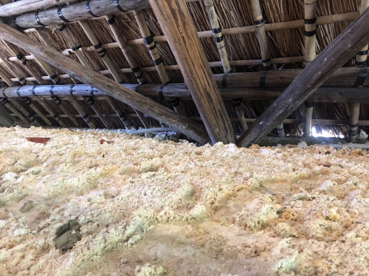 硫黄の匂いが漂う明礬温泉の湯の花小屋に行ってきました。