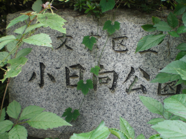 小日向公園の標石は、雑草に埋もれていて、見えません。特に西側の標石は、雑草をかき分けないと、確認ができません。それでも、文京区立の公園です。