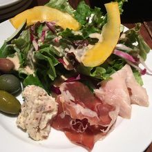 前菜の盛り合わせがなかなか豪華で、パスタも結構ボリュームあり、コスパは申し分なし。