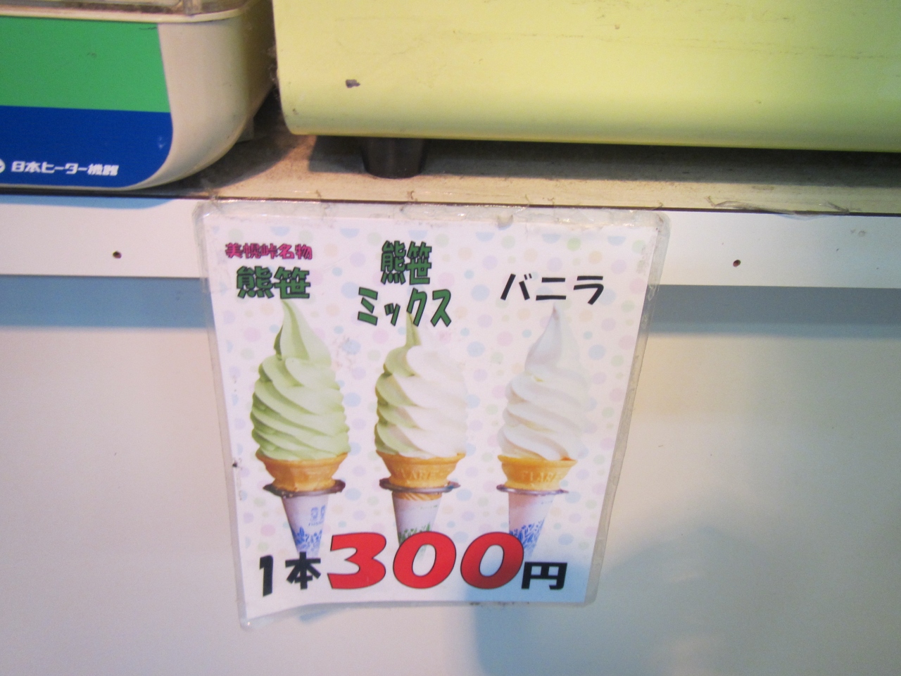 ソフトクリームは、ここではバニラの他にクマザサソフトがありました。