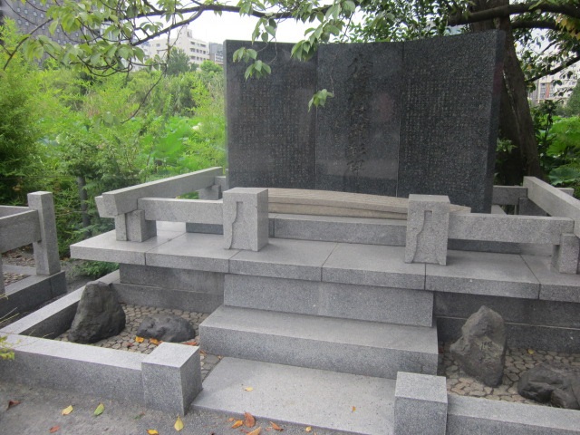 上野公園の不忍池内に浮かぶ中島にある弁天堂沿いには、沢山の石碑が並んでいますが、どこも結構マニアックなのが多い中では、日本史の教科書にも出てくるような著名人の石碑、という意味ではここが一番かもしれません。しかし、他の石碑との御多聞に漏れず、ここも解説板とかがなくて、由来などが現地で解らないのはちょっと物足りなさを感じました。石碑のデザインとしても、あまり斬新さはなく、意識して見ていないと、見逃してしまうようなレベルの石碑といえるでしょう。