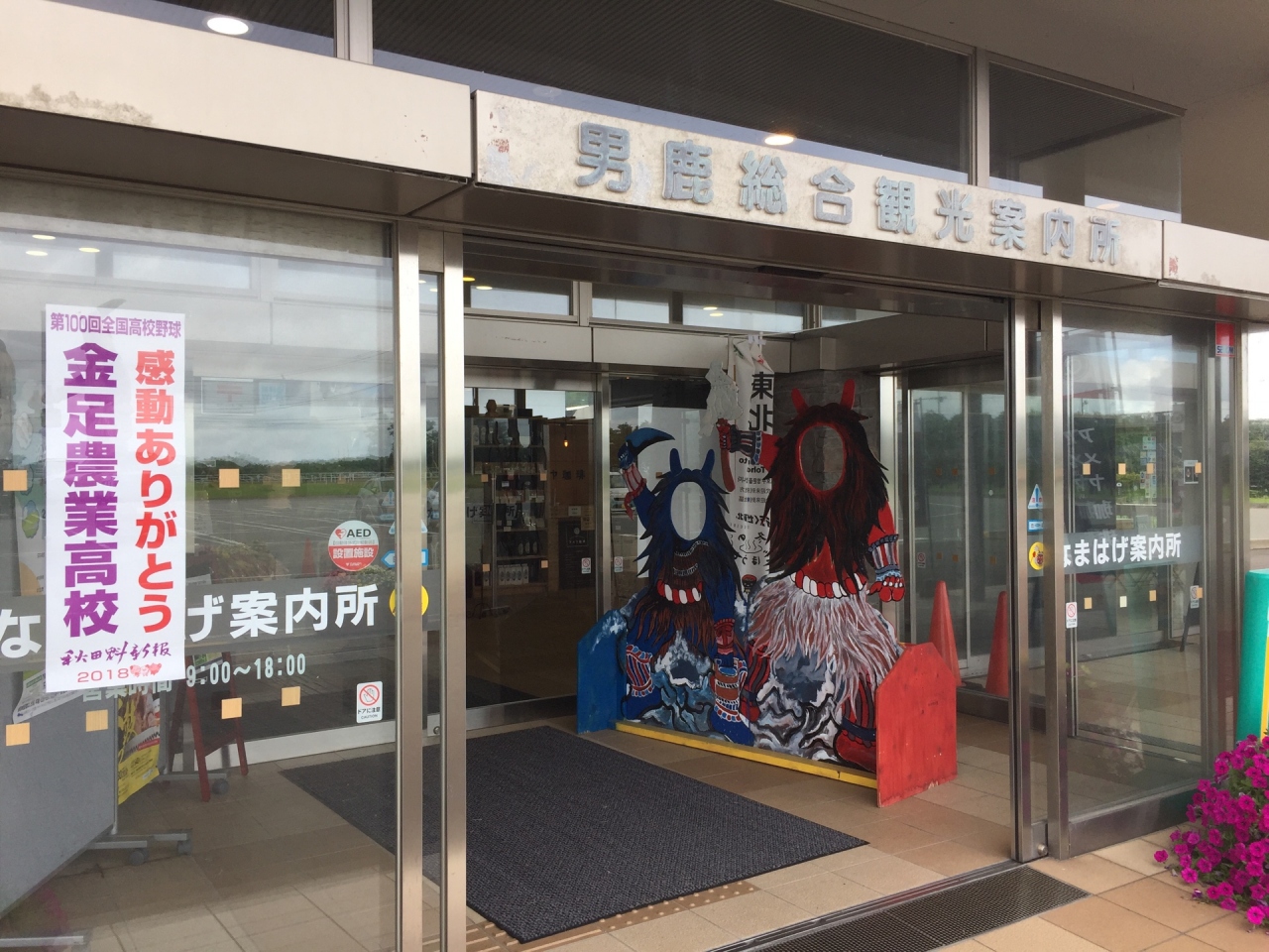 男鹿半島の入り口にあり、大きななまはげ像が立っているのでまず見落とすことはないかと思います。みなさんなまはげと一緒に写真を撮っていらっしゃいました。観光案内所はパンフレットなどをいただくにはとても良いです。