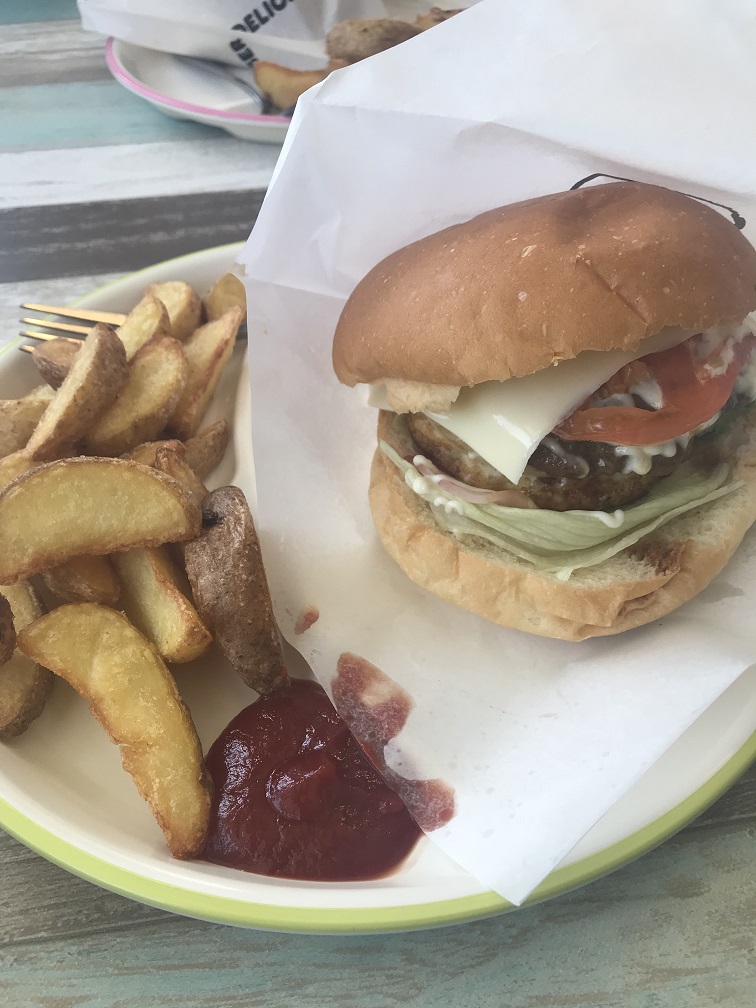 原付ドライブ後、こちらで名物の小浜島バーガーをいただきました。