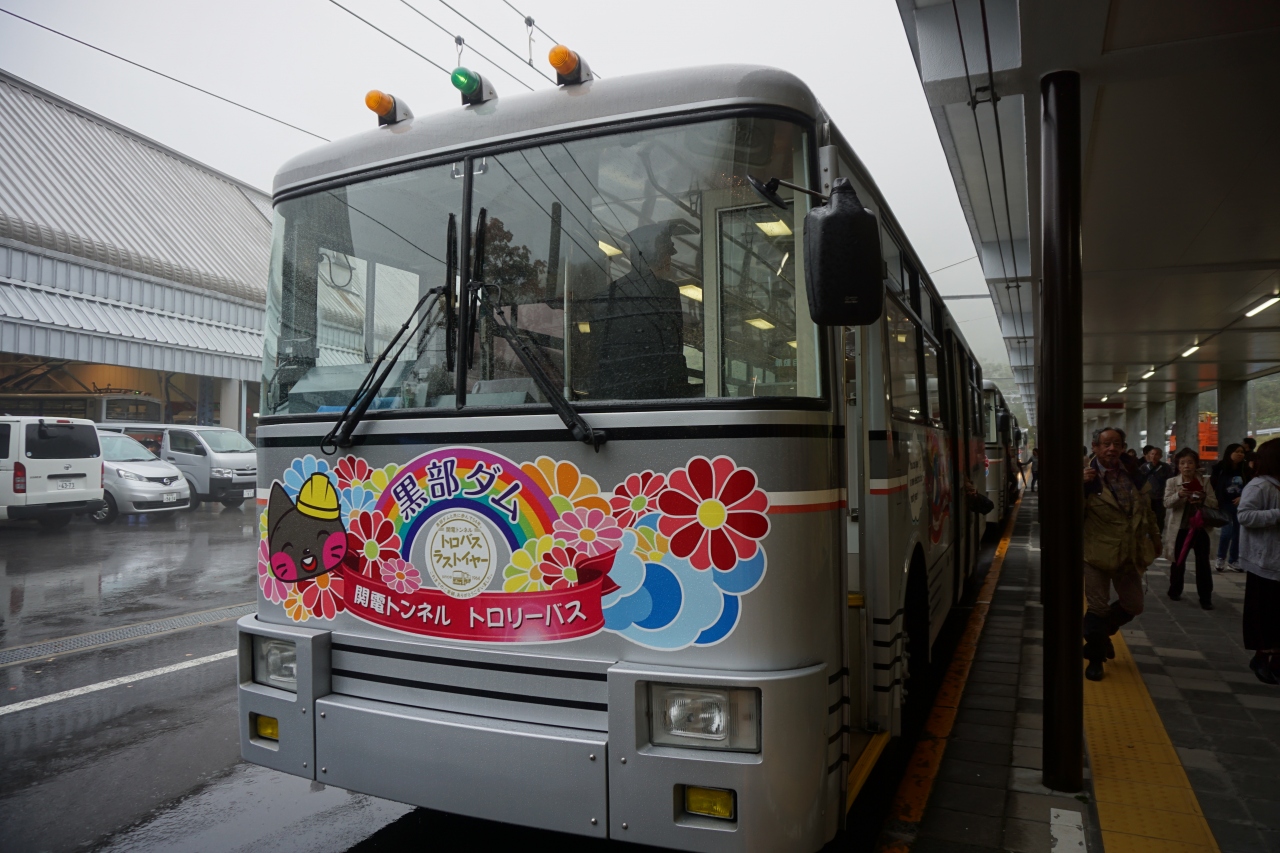 関電トンネルトロリーバスは、黒部立山アルペンルートの長野県側の始まり。富山側のスタートである立山ケーブルカーは、輸送能力に限界があるので相応の待ち時間がかかりますが、こちらはバスを何台も連ねて行くので問題なし。ご安心ください。