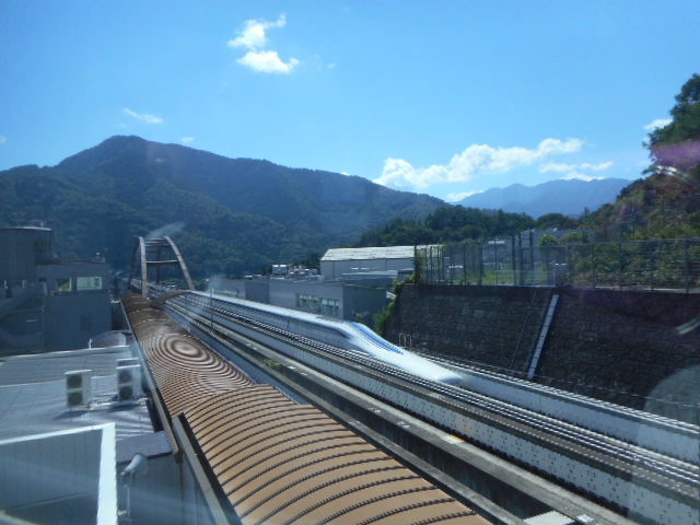 山梨にあるリニアの見学センターです。駐車場は大きい物がありますが、少し歩きます。リニア見学センターは無料ゾーンもあって、タイミングが合えば実物のリニアが走っている姿を見ることができます。とても速いです!速すぎて写真うまく撮れません。有料ゾーンは体験とかもあるので、子供連れにいいです。
