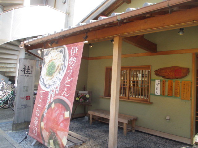 下宮参道にあるレストランです。場所も良く、高級感もあるので高いだろうと思ったところ、てこね寿司が1400円くらいで迷わず入りました。てこね寿司と言っても海鮮丼と同じという感じでしたが、新鮮なネタがたくさんのっていてこの値段で満足できました。