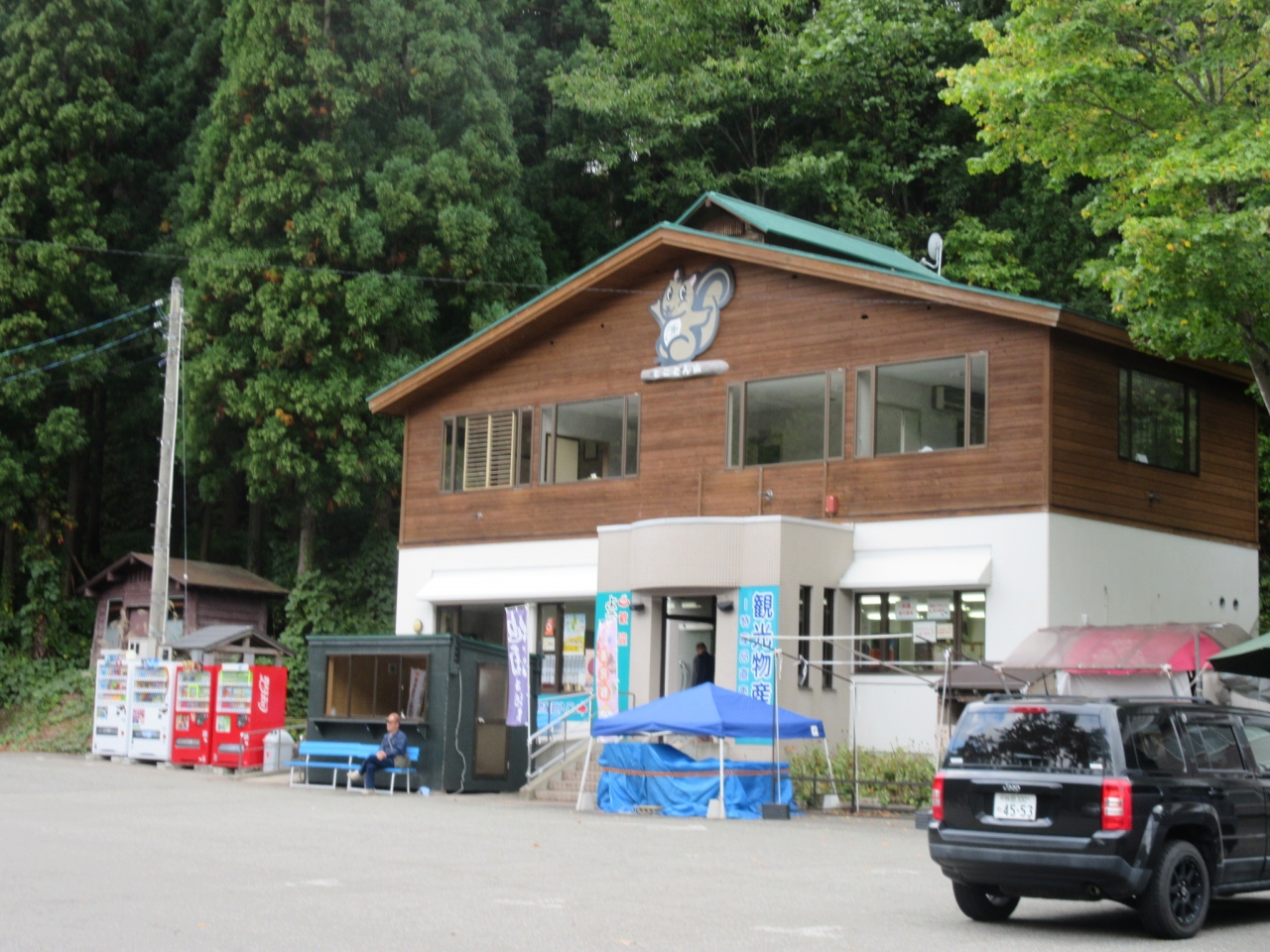 西側出入口は、観光物産館の駐車場の真向かいにありました。