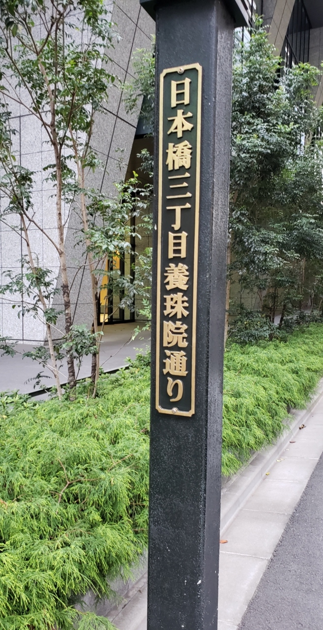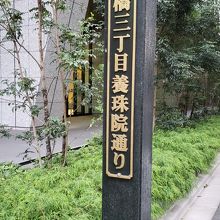 八重洲通りから北に2本目の細い路地を養珠院通りです。