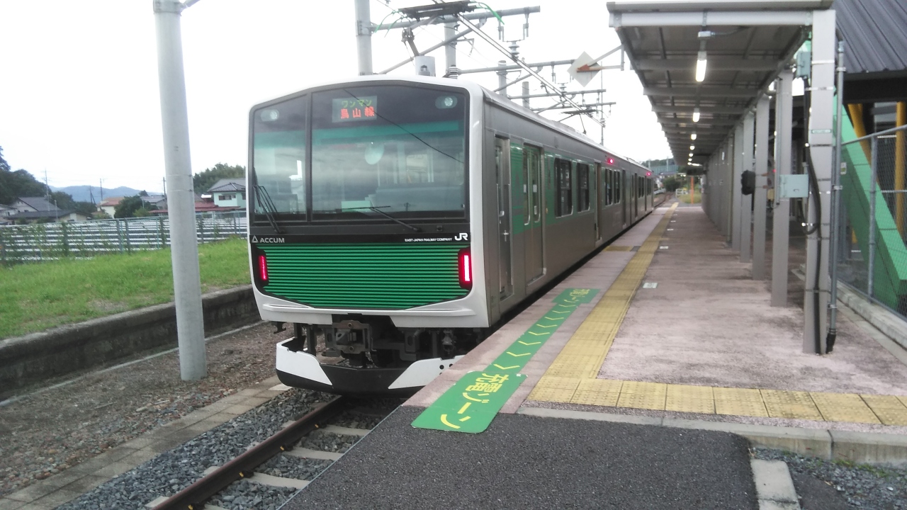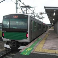 国内でも珍しい蓄電池車が走っています。日本ではここ以外に秋田県の男鹿線でも走っていますが電化方式(直流か交流か)が異なるため、違う型式の列車が使われています。途中まで電化された幹線を走り途中で枝分かれすることや、全線通して走ってもあまり長距離でないことが両線の共通点かも知れません。