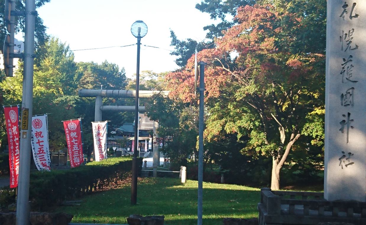 中島公園南端、札幌地下鉄幌平駅からほど近くにある神社です。豊平川の支流が横切る境内は広く整然としています。境内のあちこちに明治からの数々の戦没者の慰霊碑が並んでいます。回りにはマンションが立ち並んでいます。