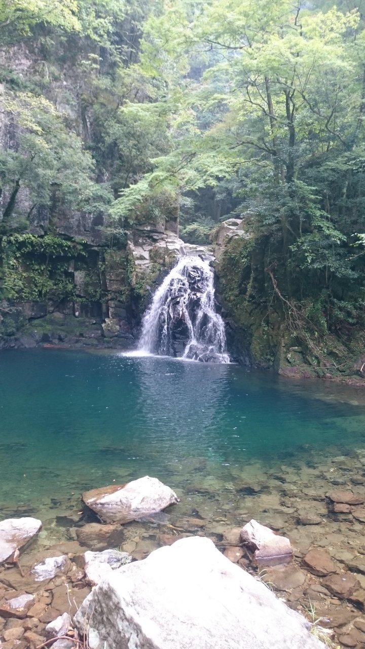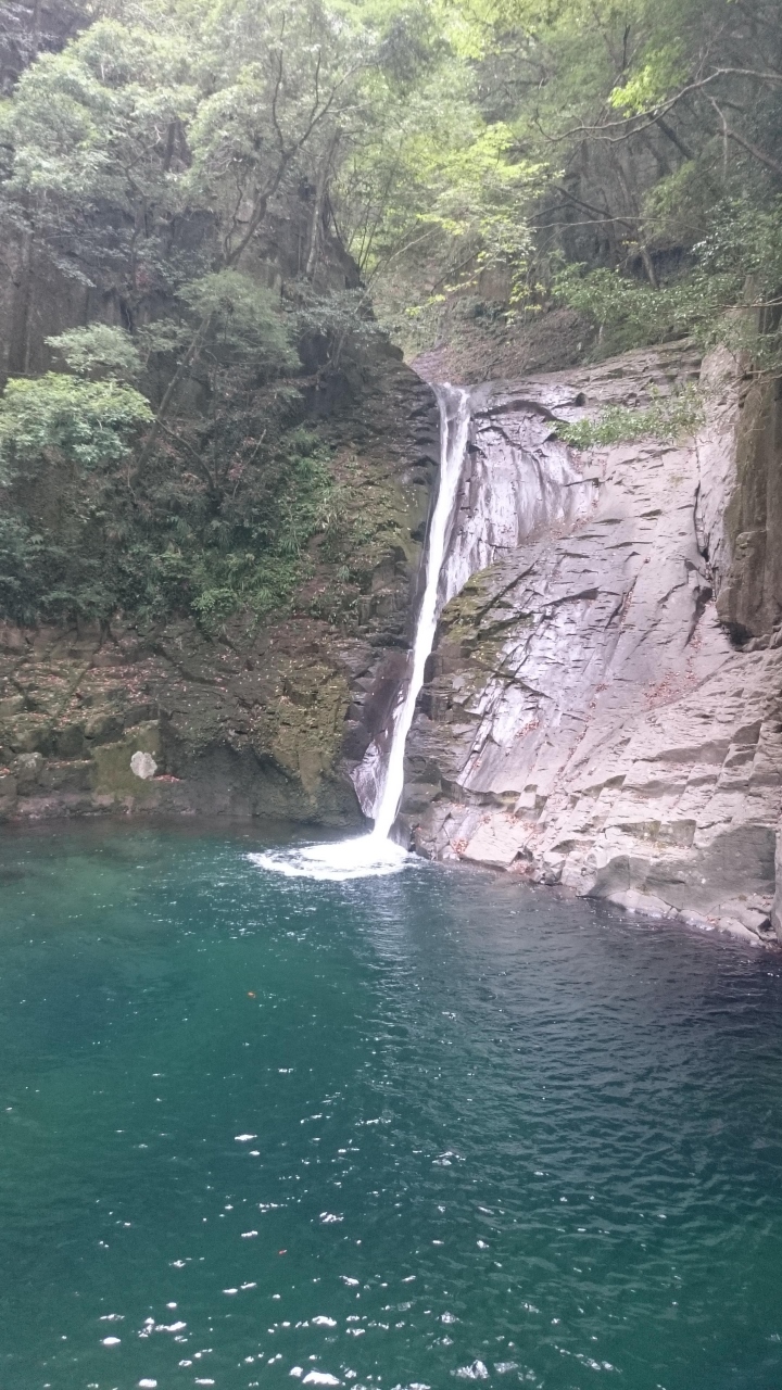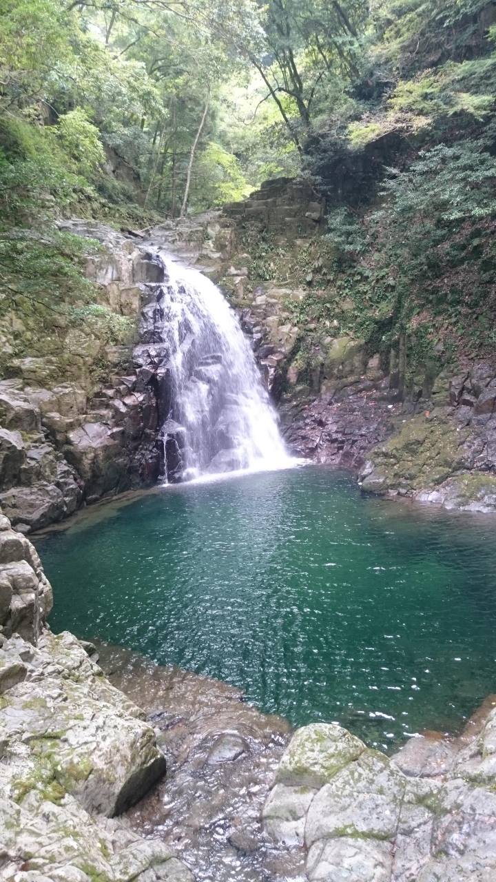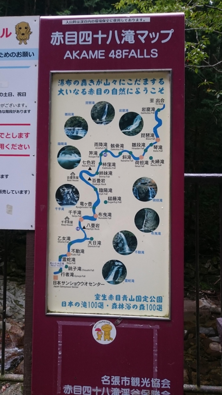 10月初めに、紅葉狩りの下見に行ってきました。近鉄で赤目口駅に着いたのが11時6分でしたが、赤目滝へ向かうバスは少し前に出た後で、次のバスはナント13時12分。2時間待たなくてはいけません!タクシーもいないのでやむを得ず、歩いて赤目滝に行くことにしました。約1時間で赤目四十八滝渓谷入口に到着、入場料400円を払ってさっそく中に入りました。パンフレットには、ゆったり散策コース片道23分、渓谷ハイキングコース片道90分の記載がありますが、入口に着くまでに時間・体力をかなり使ったので、ゆったりコース+百畳岩まで往復しました(片道40分程)。まだ紅葉には早く青紅葉でしたが、赤目五瀑のうち不動滝、千手滝、布曳滝の3つの滝と行者滝、乙女滝などいくつもの滝を見ることができ、マイナスイオンを体いっぱいに浴びて癒された気分になりました。