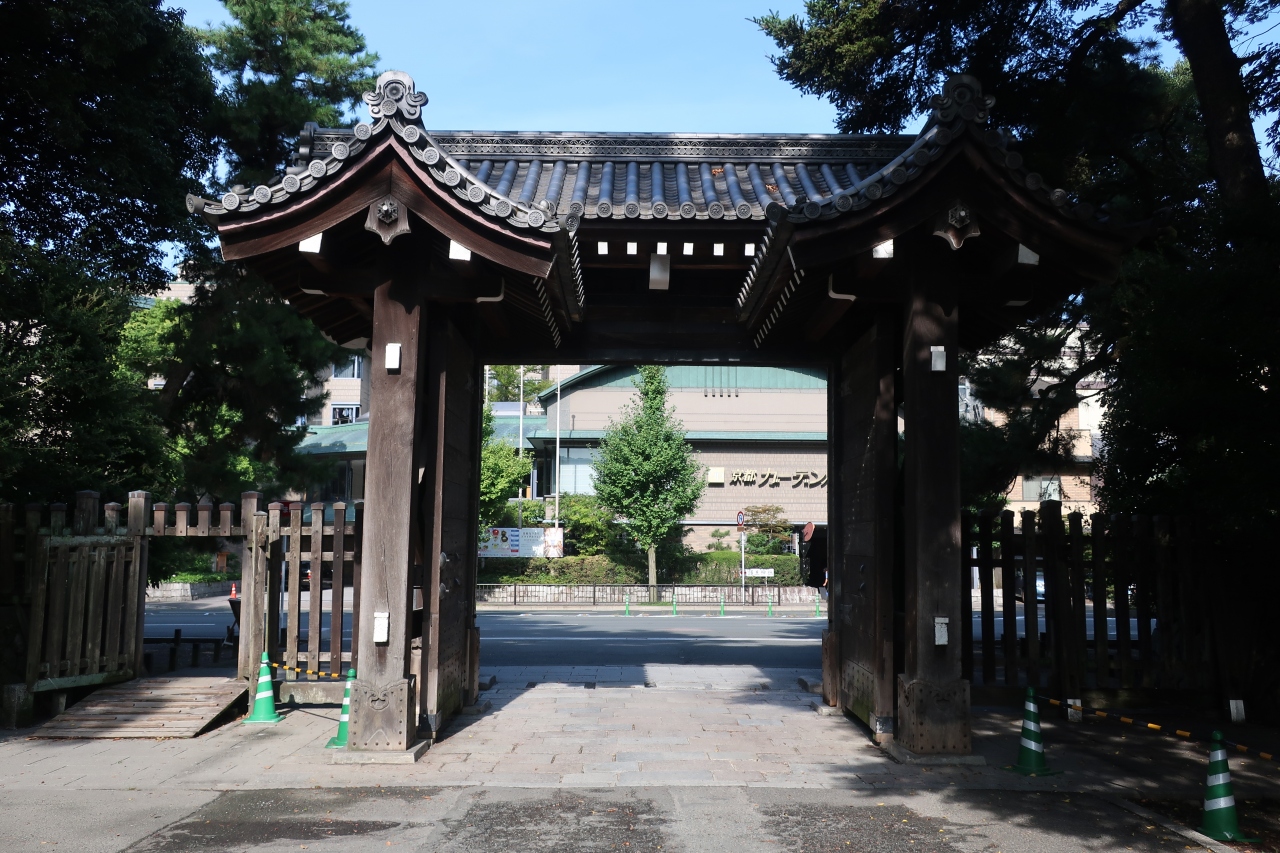 京都御所の西側、中央にある御門です。京都御所にある9つの御門の中で一番名の知られた御門です。それは明治維新の発端となった禁門の変、別名蛤御門の変の舞台となった場所がこの蛤御門だからです。長州藩と薩摩藩を含む幕府軍が衝突し、蛤御門にはその時の銃痕らしき跡が今でも見て取れます。今年は明治150年、大河ドラマでも「西郷どん」が放映され、見に来られる人が結構多く居られました。