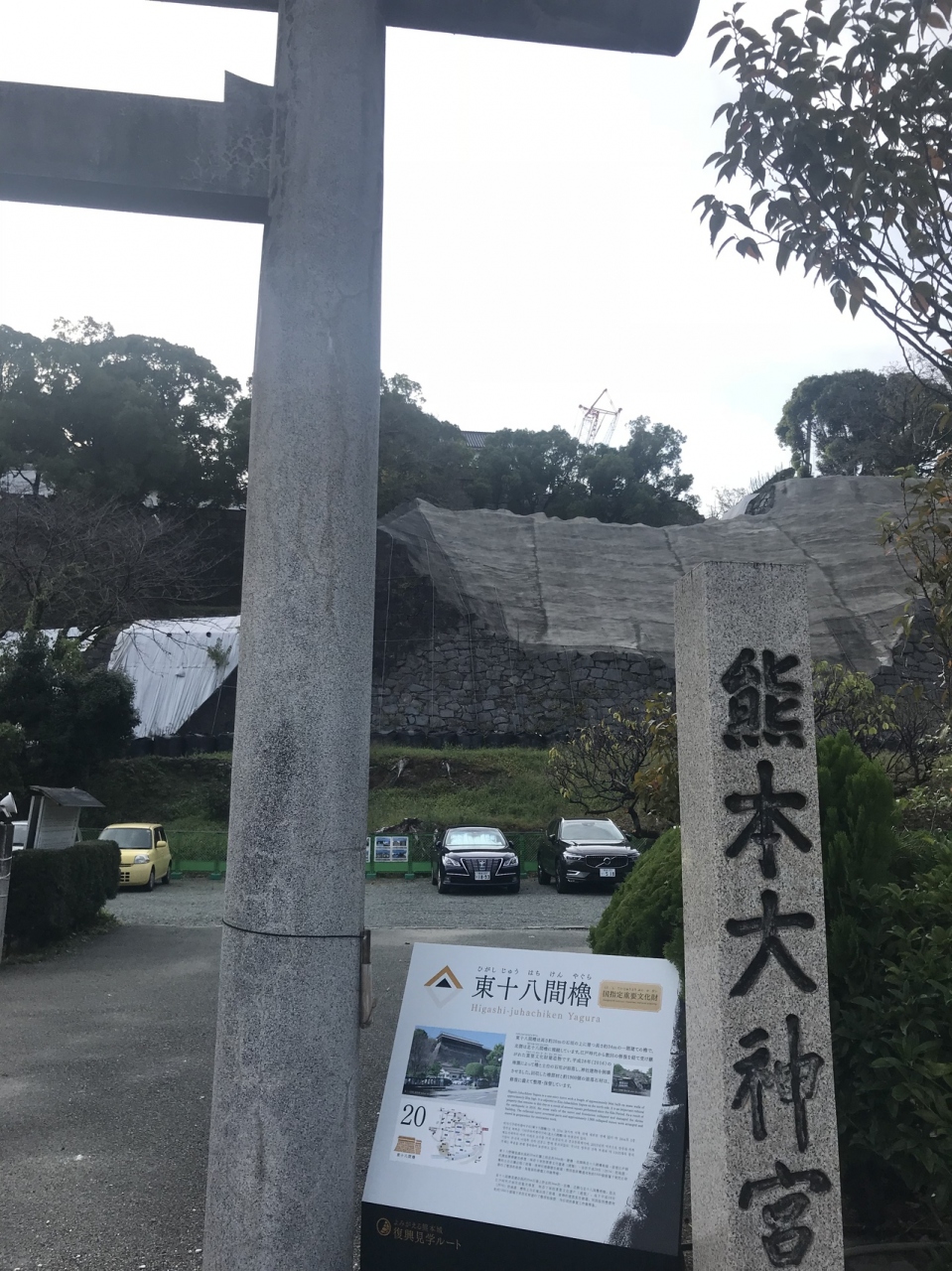 明治3年に神宮教院の熊本本部として、伊勢神宮の神霊を迎えて熊本城に鎮座しました。西南戦争により、よく年10月に熊本城とともに消失しました。明治21年には、鷹匠町へと移転し、大正15年に、現在地に神殿を新設しました。