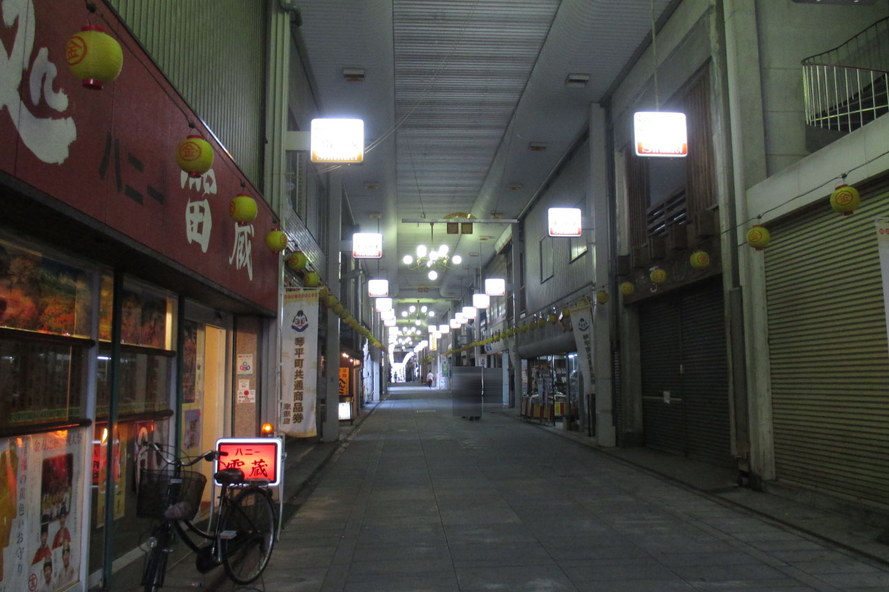 参道に続くアーケードのある商店街ですから、お土産屋さんやお遊びどころでもあるのかなと思いましたが、そういうものは一切なく、まさに地元の商店街でした。夕方に訪れましたが、休日だったからなのか、開いているお店は少なかったです。ちょっと、地方都市に多いシャッター通りを思ってしまいました。