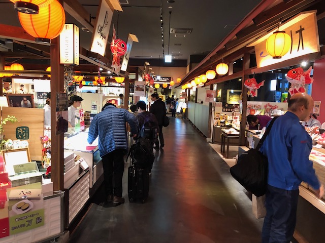 新青森駅の1階にある土産物などを扱う物産店です。青森土産を買うのに立ち寄りました。新幹線の改札内にも売店はあるのですが、お土産を買うなら改札外のあおもり旬味館で買う方が店舗も、お土産の種類も格段に多いです。「気になるリンゴ」等のお菓子から、「いちご煮」等の名物が沢山あります。