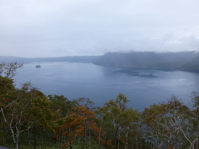 摩周湖、阿寒湖、洞爺湖など北海道観光といえば湖観光のイメージがあります。9月下旬、そんな湖のいくつかを歩きましたが、いずれも火山の火口の跡に水がたまった火口湖。火山といえば九州のイメージがあったけど、北海道もホント負けてない。バスガイドさんが心配していましたが、霧の摩周湖はこの日、小雨の摩周湖。霧ではないせいか、展望台からは、くっきりとは言わないまでも、ほぼ全体を見渡すことができました。火口だから当たり前かもしれないけど、周囲は断崖絶壁。その姿はかなり神秘的であります。この手の湖を見たのは生まれて初めてかも。驚きは湖のほぼ真ん中に小さな島があったこと。実はカルデラの中に顔を出してきた火山の頂上部だとか。なーんか自然のものすごい力を感じてしまいました。それにしても、寒かった。標高が数百メートルはあるそうで,寒いのなんのって。