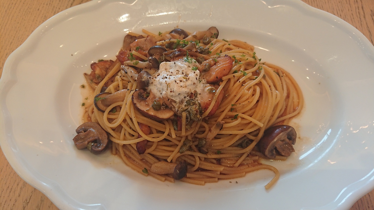 この日は季節限定の「きのことローストチキンのソイソースパスタ」を注文。