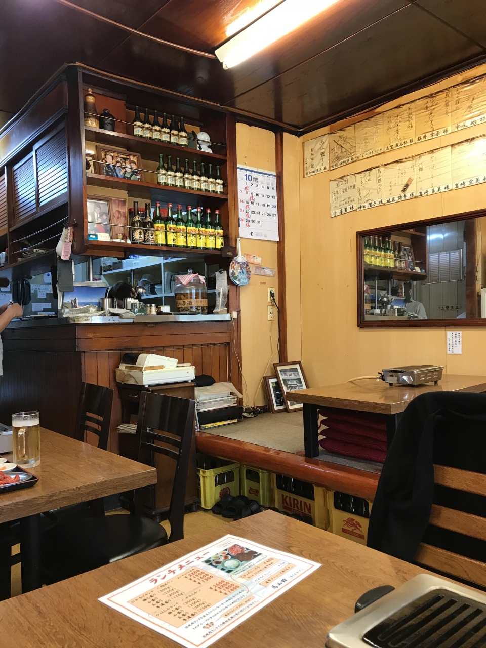 とてもレトロな雰囲気で、ロースターや煙でいぶされてべっこう色になった壁の色など、これぞ街焼肉といった感じのお店です。