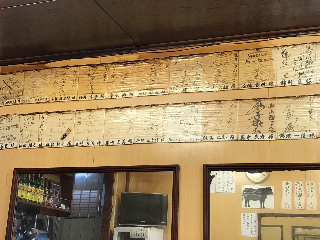 壁にはたくさんの芸能人のサインが貼ってありました。