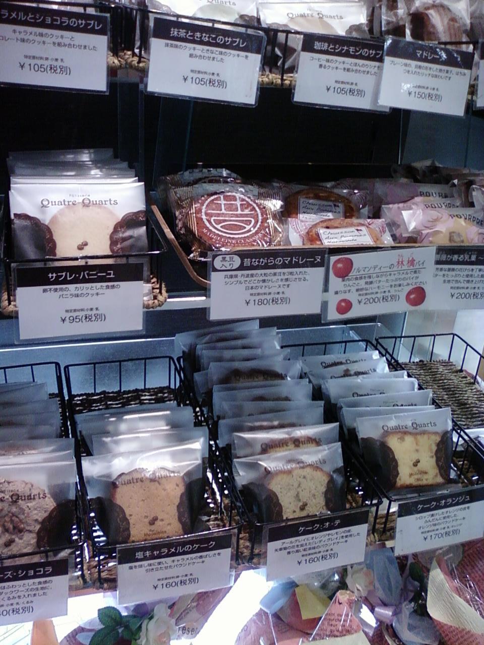 ここのキャトルキャールさんは、JR武蔵小金井駅南口から3分くらいのところにある、イトーヨカドーの一階にあるケーキ屋さんです。塩キャラメルのケークと黒豆入りの昔ながらのマドレーヌをいただきました。どれもとてもなんとも言えないバターのリッチな仕上がりで、午後のおやつに紅茶とともにいただきたい名品です。特に塩キャラメル、非常に気に入りました。その他にもたくさんの種類があって、目移りします。