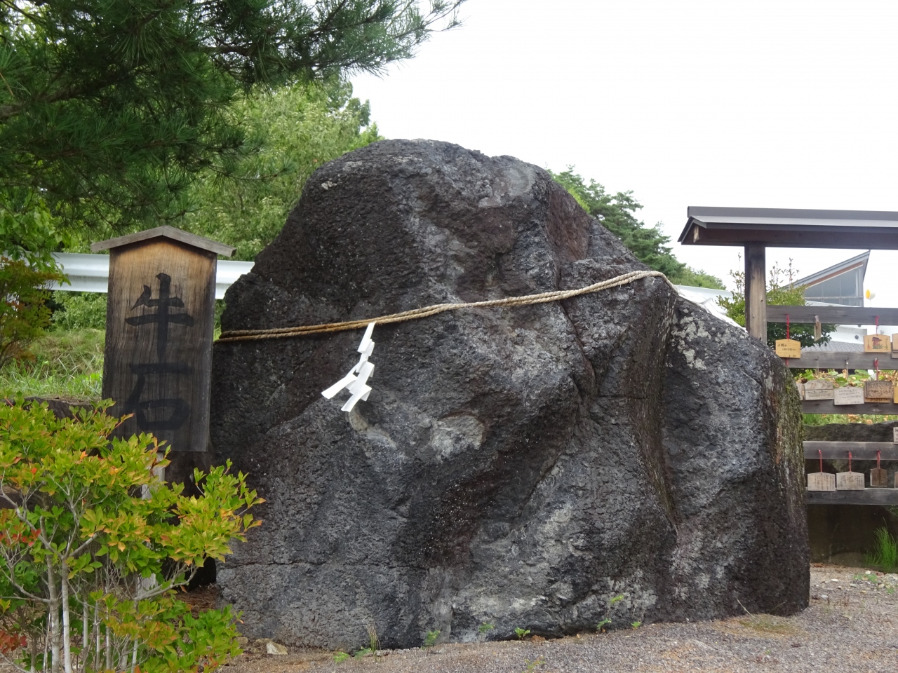 駐車場の一角には「ささやき神社」があり、拝殿の左手には「牛石」、右手には「耳石」が並んでいます。耳の形をした耳石にささやくと良いことがあるそうです。