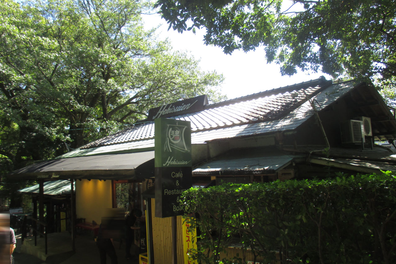 もう11時を過ぎていましたから、すぐ隣の城見茶屋はお客さんの呼び込みをやっていて商売モードいっぱいでしたが、碧水園はまだ準備中の看板が出ていました。また、ここは日本語ではなく、やたらに英文字の看板が多いので、対象とするお客さんは日本人ではなく、昼食時間の遅い海外の方なのでしょうか? 旭川上で貸しボートもやっている様ですが、日本語はどこにもありませんでした。