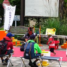 正面玄関前では日光猿軍団の猿回し。新人研修のようでした(笑)