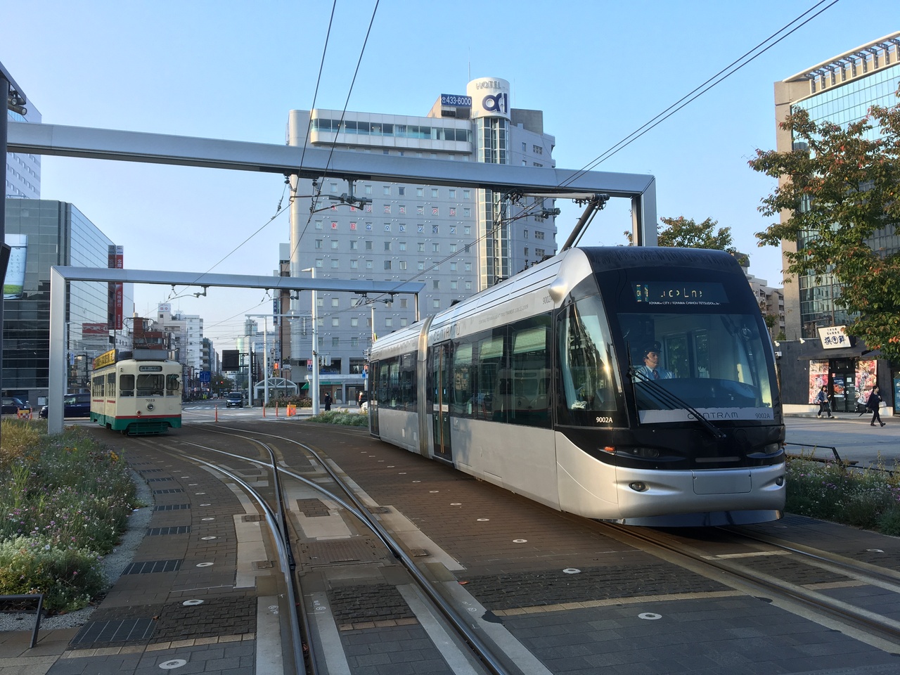 富山駅の建物の中に乗り場があり、小雨でしたが、濡れることなく、ありがたかったです。大学前と南富山からの電車は一旦富山駅に入って、方向を変えていました。環状線も含めて、一回200円なので、何回でも乗れる一日乗車券にお得感がありました。