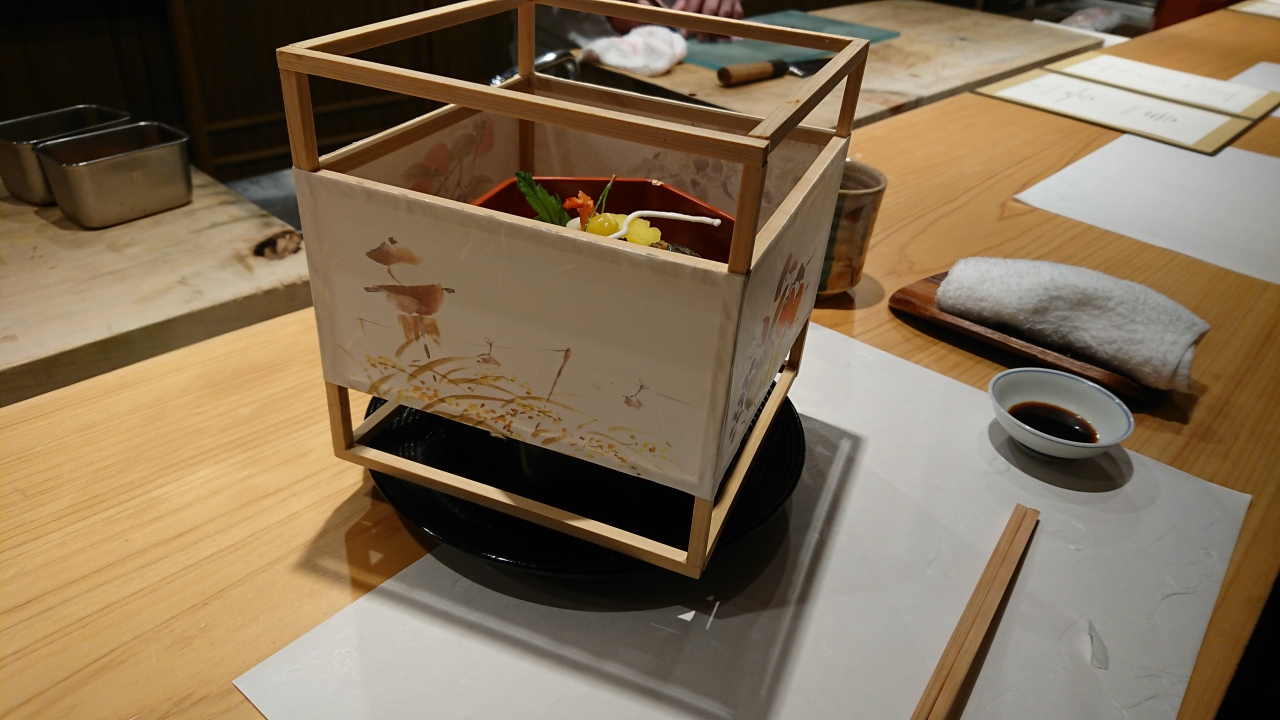 そのあと予定もあったので、ランチスタートの11時に到着。元気のよい「いらっしゃいませ」を皆さんからいただき、ちょっと照れながらカウンター席に着席(笑) カウンターが少し高い目線になるので、板さんの作業が良く見えます。素晴らしいライヴ感でした。