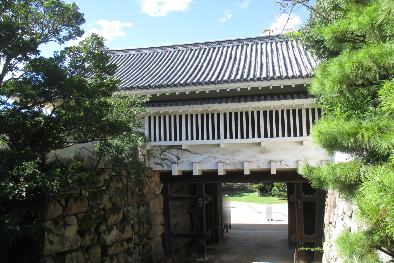 お殿様の居住空間である本段への門です。最後の守りということでずいぶんとしっかりとした門です。実際の戦いを考えるともっと幅が狭い門の方が良いと思われますが、お殿様の見栄ですかね。他のお城と比べても大きな門の様に思います。入った先には階段(中段と本段との高低差分)が設けられています。