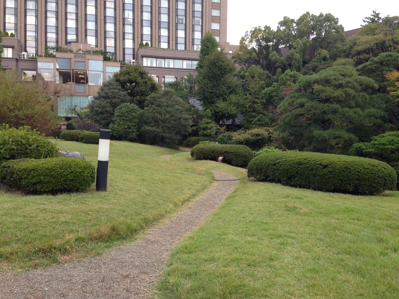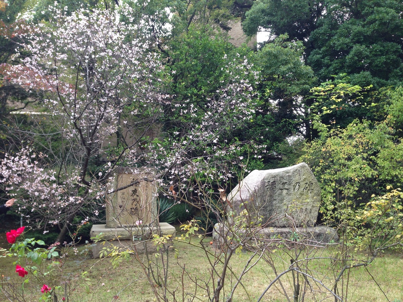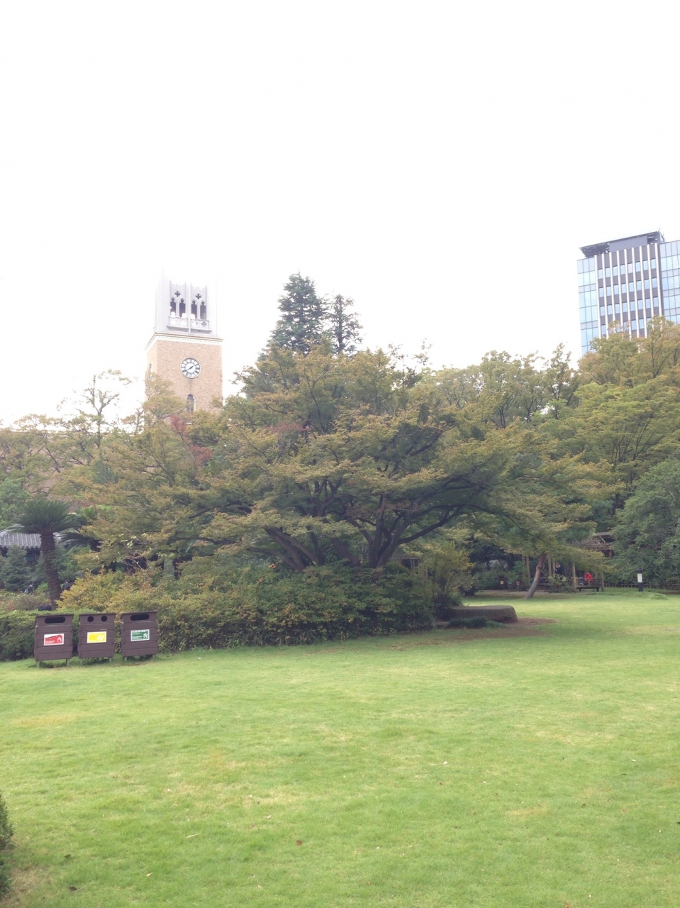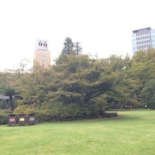 新宿御苑のミニチュアみたいな印象を受けました。芝の緑がとてもキレイで何もひかなくても 座る気になれました。 学生さんたちがくつろいでいたかと思えば その向こうには外国からの観光客…学校の中とは思えない光景がおもしろい。