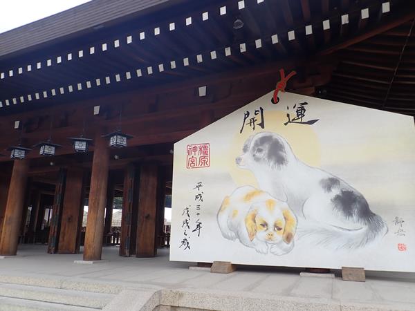 外拝殿前には干支の戌年のとても大きな絵馬があってかなり目立っていました。