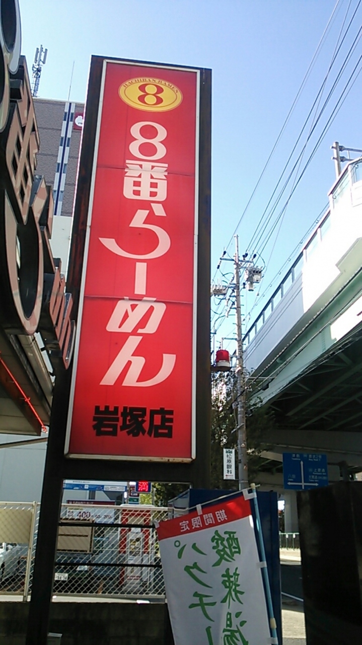 石川県の金沢に本拠地を持ち、北陸3県を中心にラーメンのチェーン店を運営している「8番らーめん」の店舗の1つで、名古屋市西部に位置する岩塚という所にあります。
