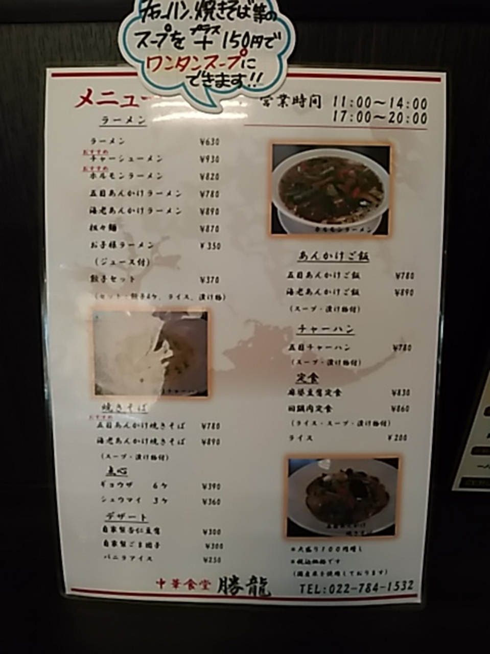 東部自動車道と名取エアリ北側の道路交差か所近くにあります。カウンター6席、テーブルと座敷合わせ16席位です。メニューは全体的にあんかけが多いです。お店のお勧めはチャーシュー麺とホルモンラーメンで、今回は、ホルモンラーメン820円をいただきました。あんかけピリ辛で、ホルモンがゴロゴロ入っていました。美味しかったです。店内は中華鍋の音が鳴り響いて、活気があります。