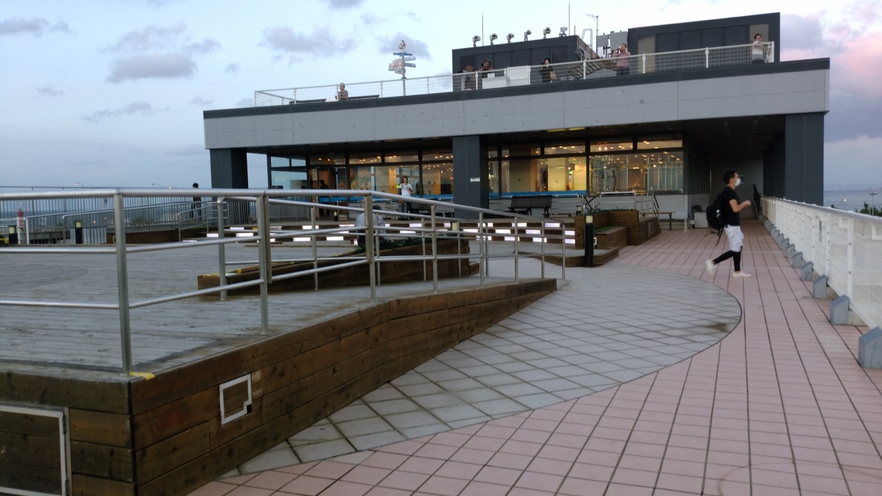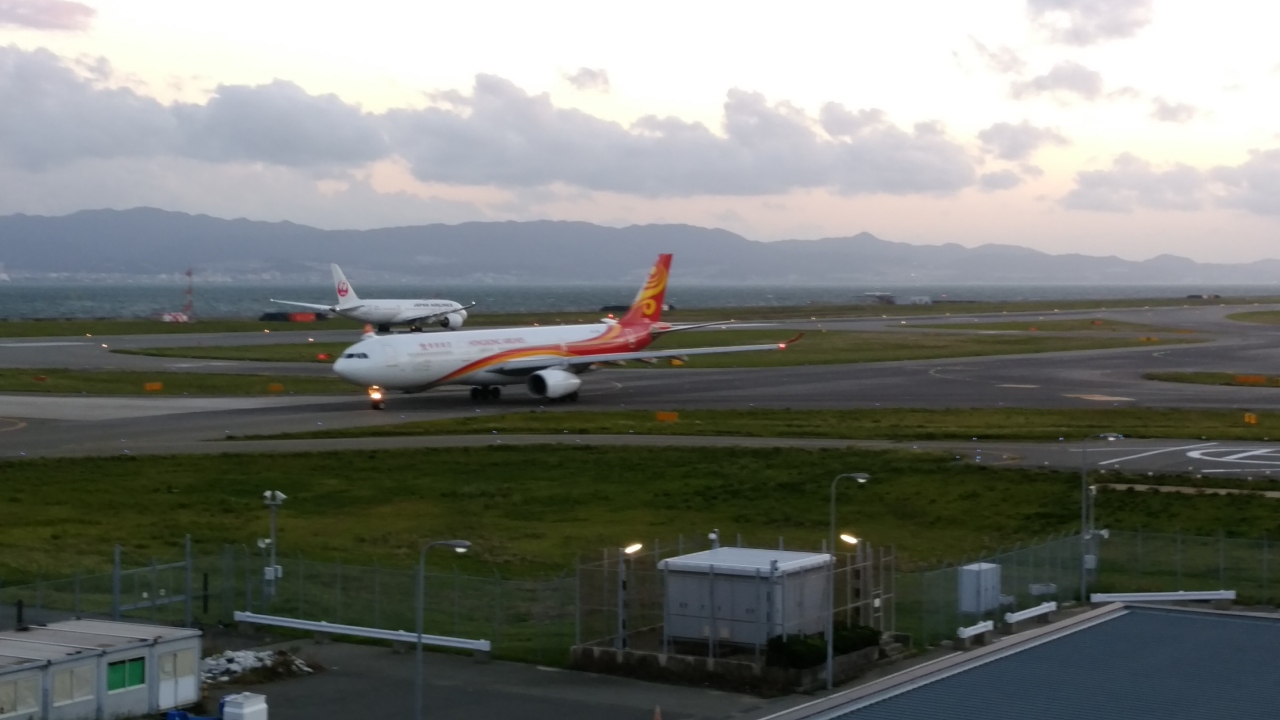 通常の空港ビルの上からは、滑走路を横に見ますが、ここは滑走路を縦に見るので、いつもと違う方向から見られて良かったです。 夕方で、夕日もきれいに見えました。