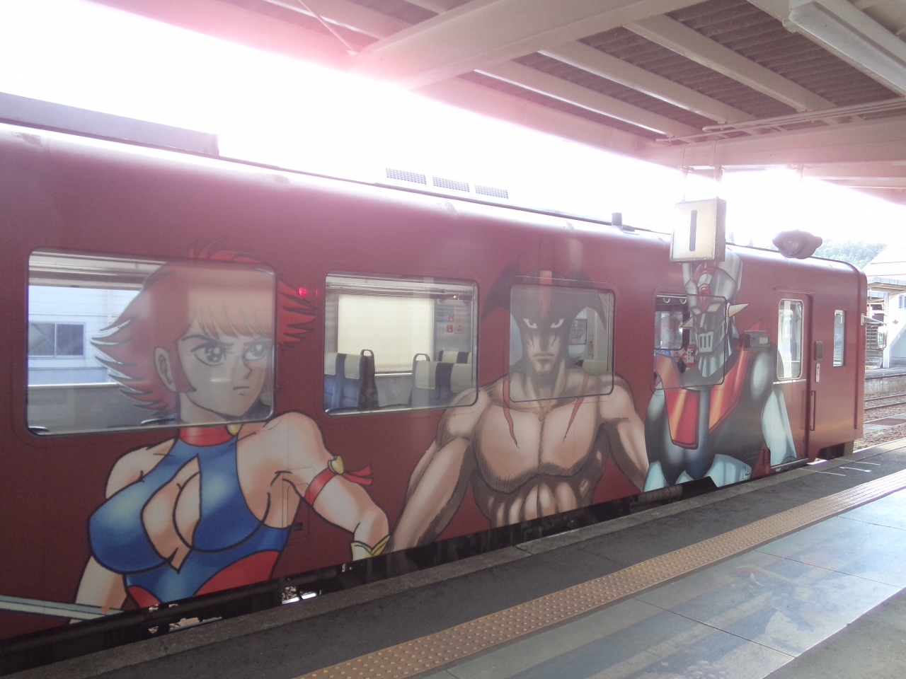 輪島市出身の漫画家、永井豪さんのアニメのラッピング列車に乗りました!