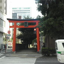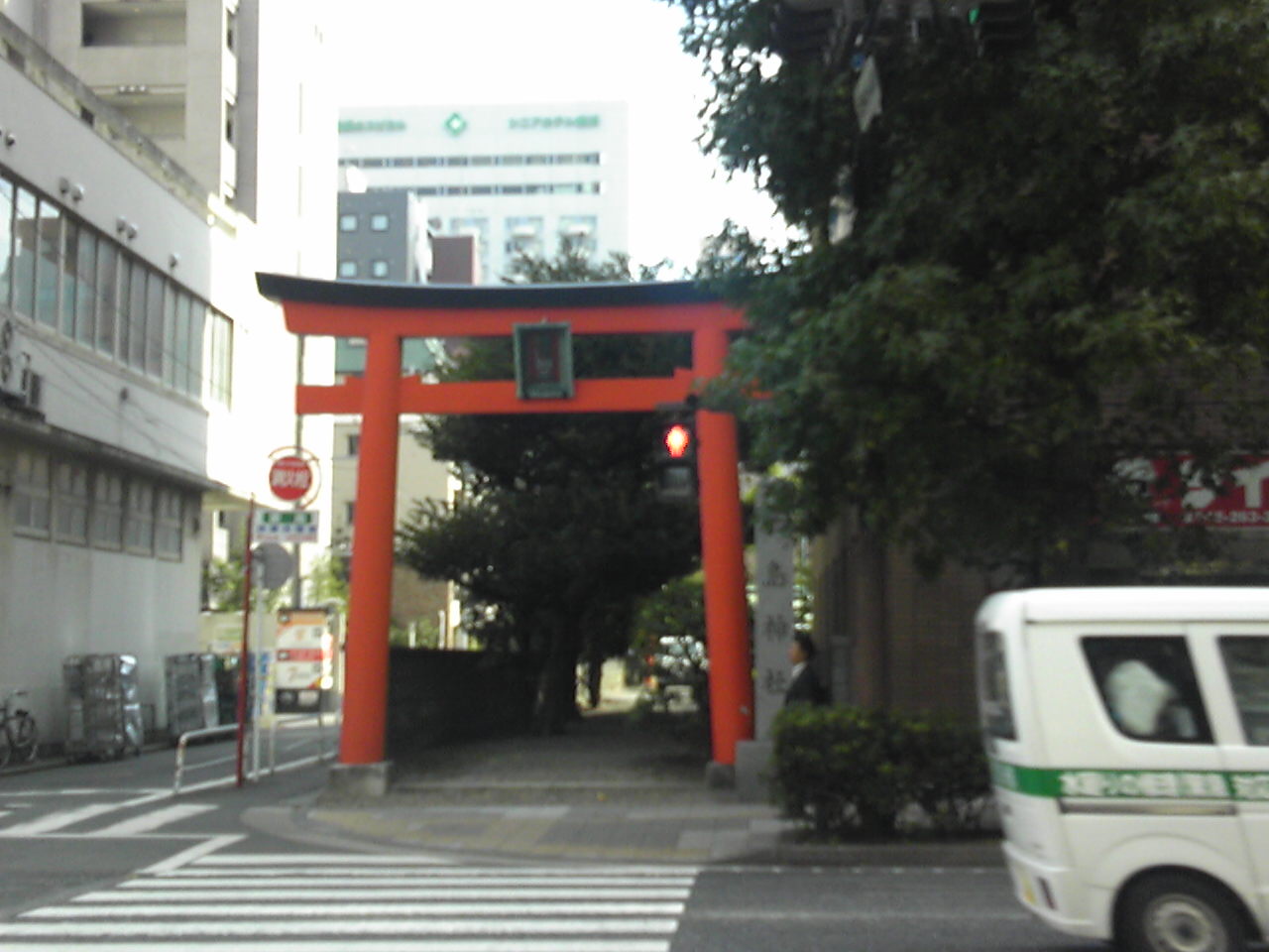 ビルの合間に会って目立たないですが、商売繁盛をお祈りしています。