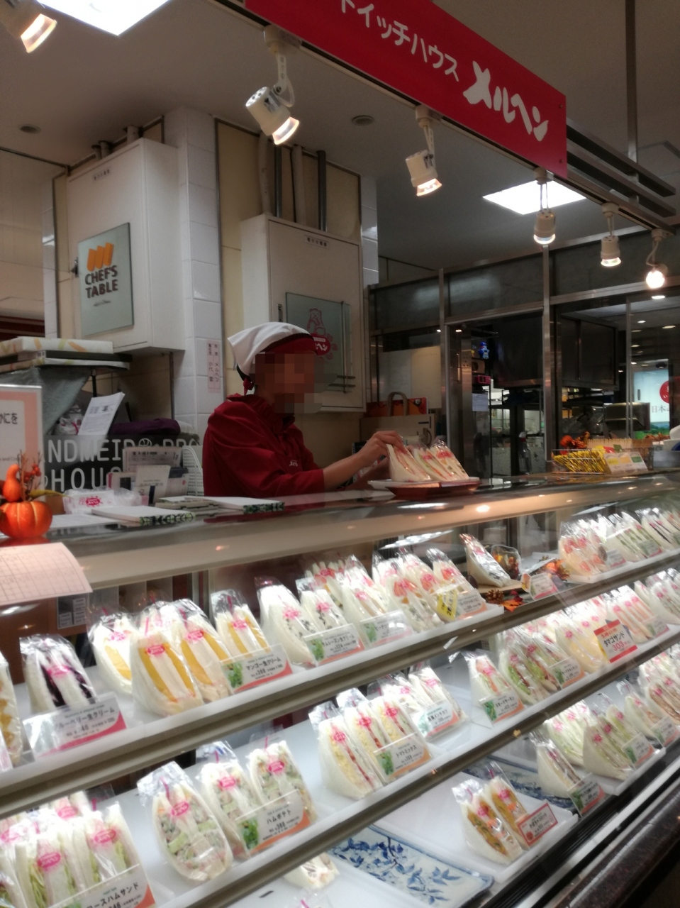 船橋東武の地下食料品売り場にあるお店のひとつです。サンドイッチの専門店で、ショーケースに並ぶサンドイッチの種類はかなり充実していました。定番の玉子サンドやハムサンドをはじめ、フルーツとクリームたっぷりのスイーツ系のサンドイッチまで売っているのでおみやげに買って帰るのもオススメです。
