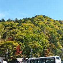 ちょうど紅葉が楽しめる時期にあり、まわりの山々は見頃を迎えています。