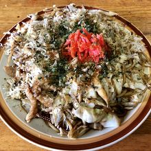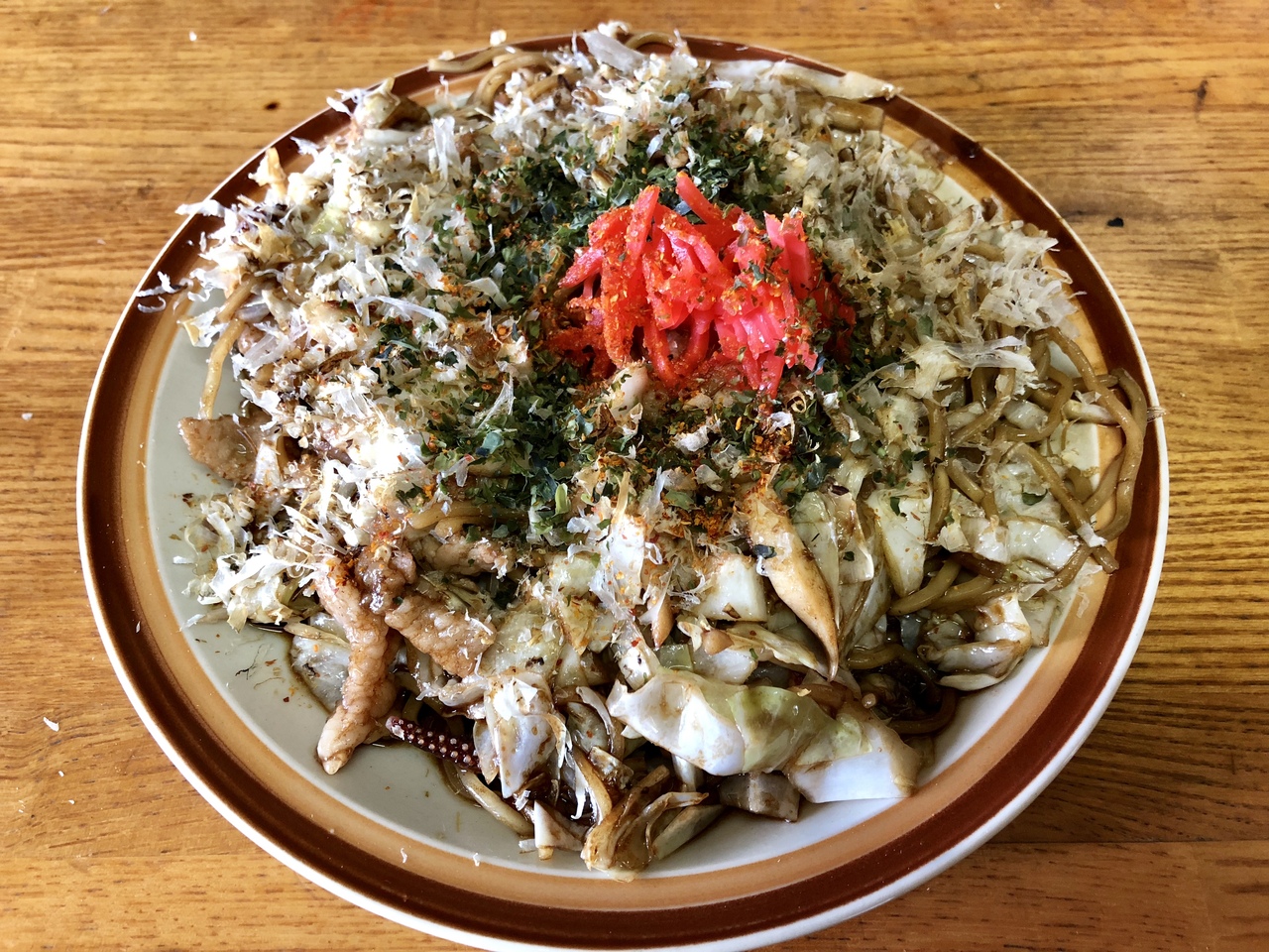 麺はコシがあり、ダシ粉と天カスと濃い目のさらっとしたソースの味付けが美味しい『富士宮焼きそば』でした。
