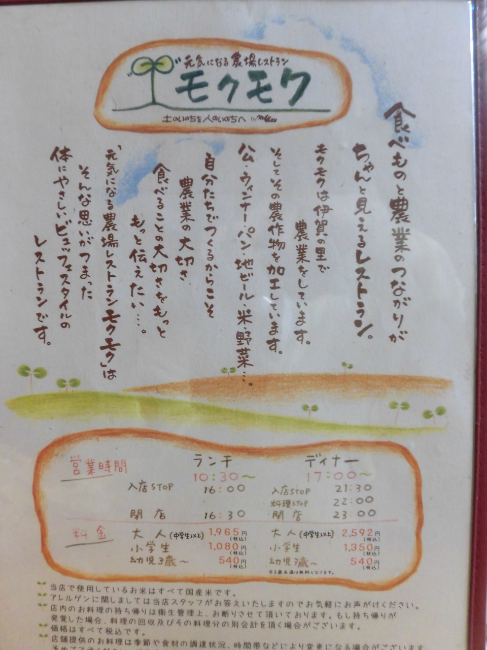 三重県伊賀にある農場モクモクのレストランです。自分のところで採れた野菜やウインナーを使用したレストランです、ランチもディナーもバイキングのみです。
