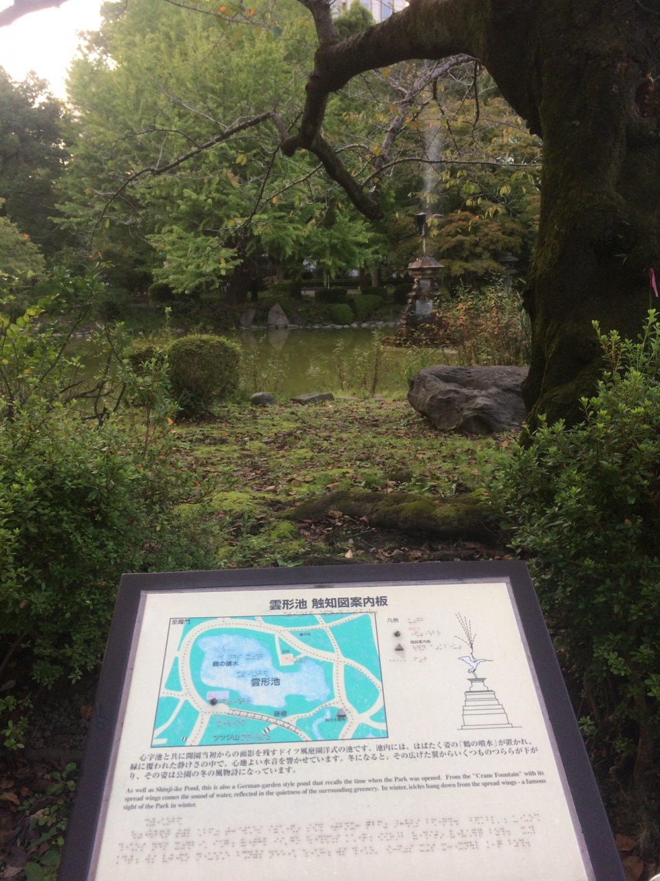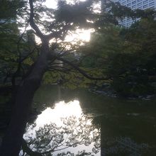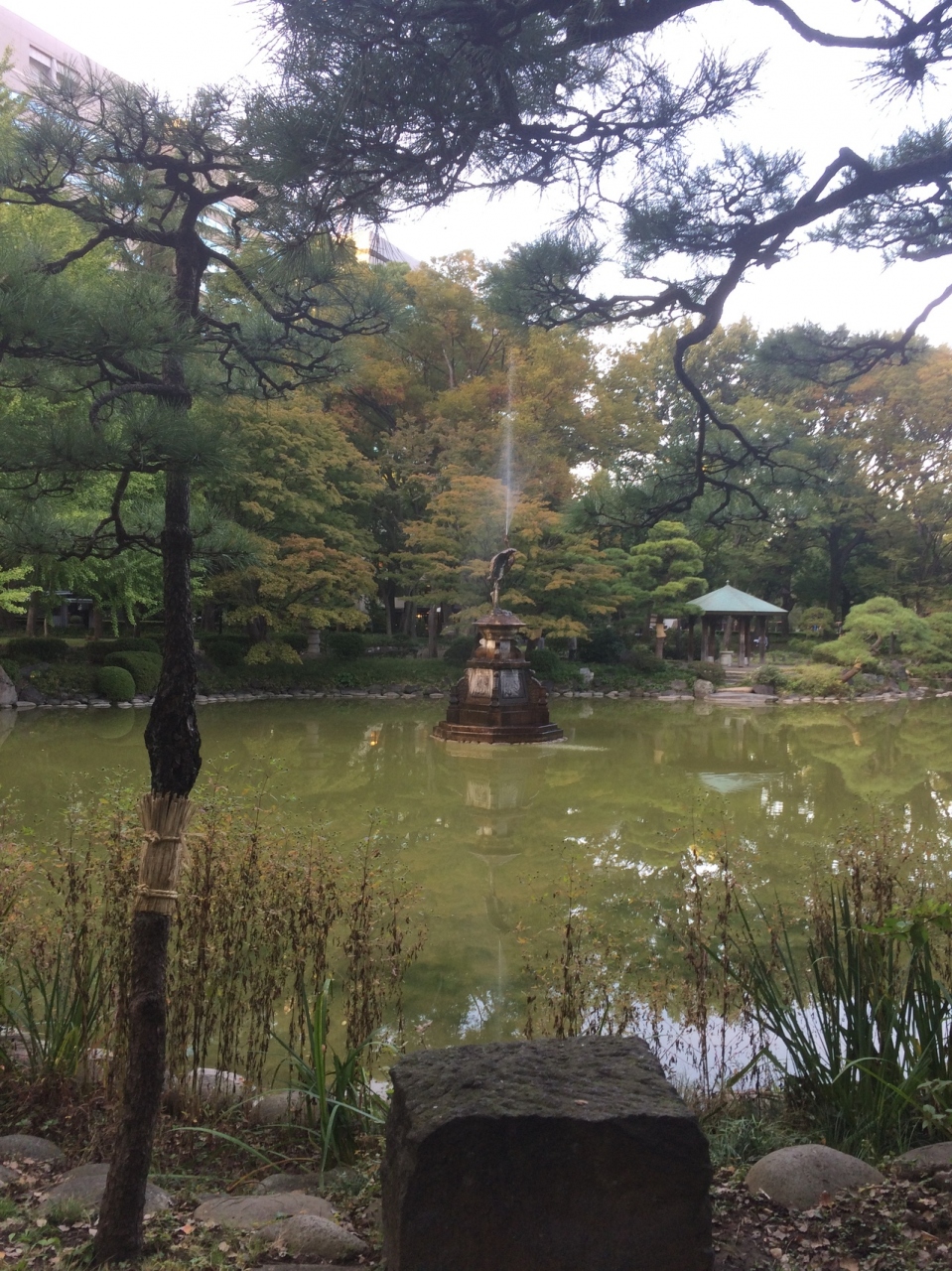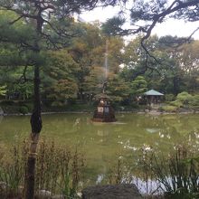 歩いたら池畔5分ぐらいかかる大きな池で周りは遊歩道でした。池の中には鶴族があり、くちばしから噴水が出ていて東屋のような場所があり,座って見学出来ました。池の水は汚かったですが、庭には松等が配置され庭園のような感じでした。
