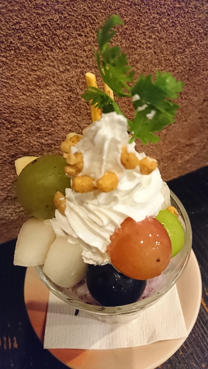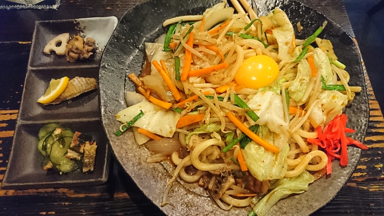 ホルモンうどん860円・地だこと黄ニラの炒飯950円・岡山フルーツパフェ620円を注文。