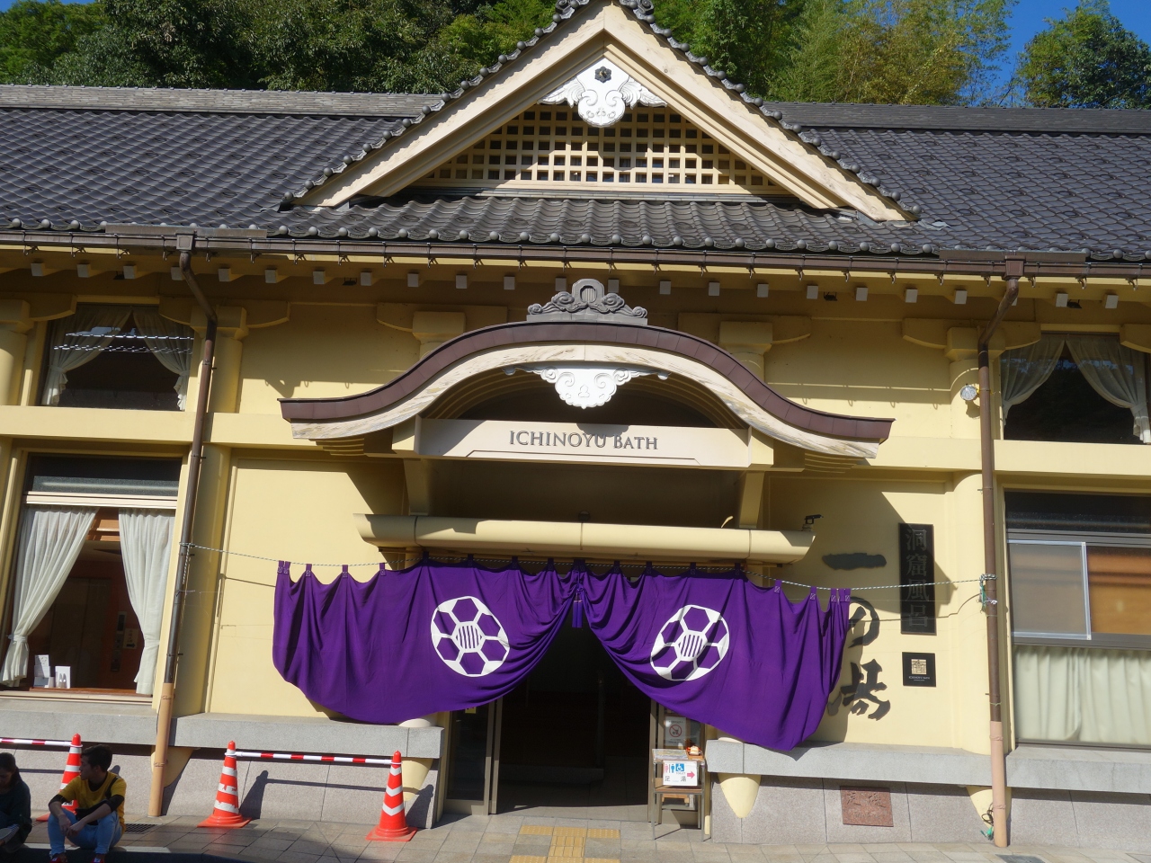 場所は王橋のまん前ですので,城崎温泉のほぼ中心といってよいでしょう。営業時間も長くて,朝7時から夜の11時までやっています。したがって,みんな入りに来ます。建物も,桃山様式とのことで,風情があります。洞窟風呂があるのが特徴でしょうか。