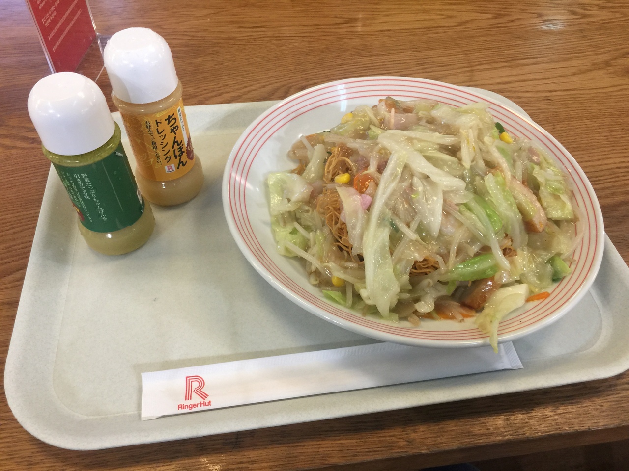 食べたのは野菜たっぷり皿うどん!酢をたくさんかけて、さらにドレッシング!美味い(^ ^)